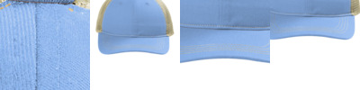 Fabric 100% cotton twill front panels and bill (Solids), 65/35 polyester/cotton twill front panels and bill (Heather Grey) 100% polyester mesh mid and back panels